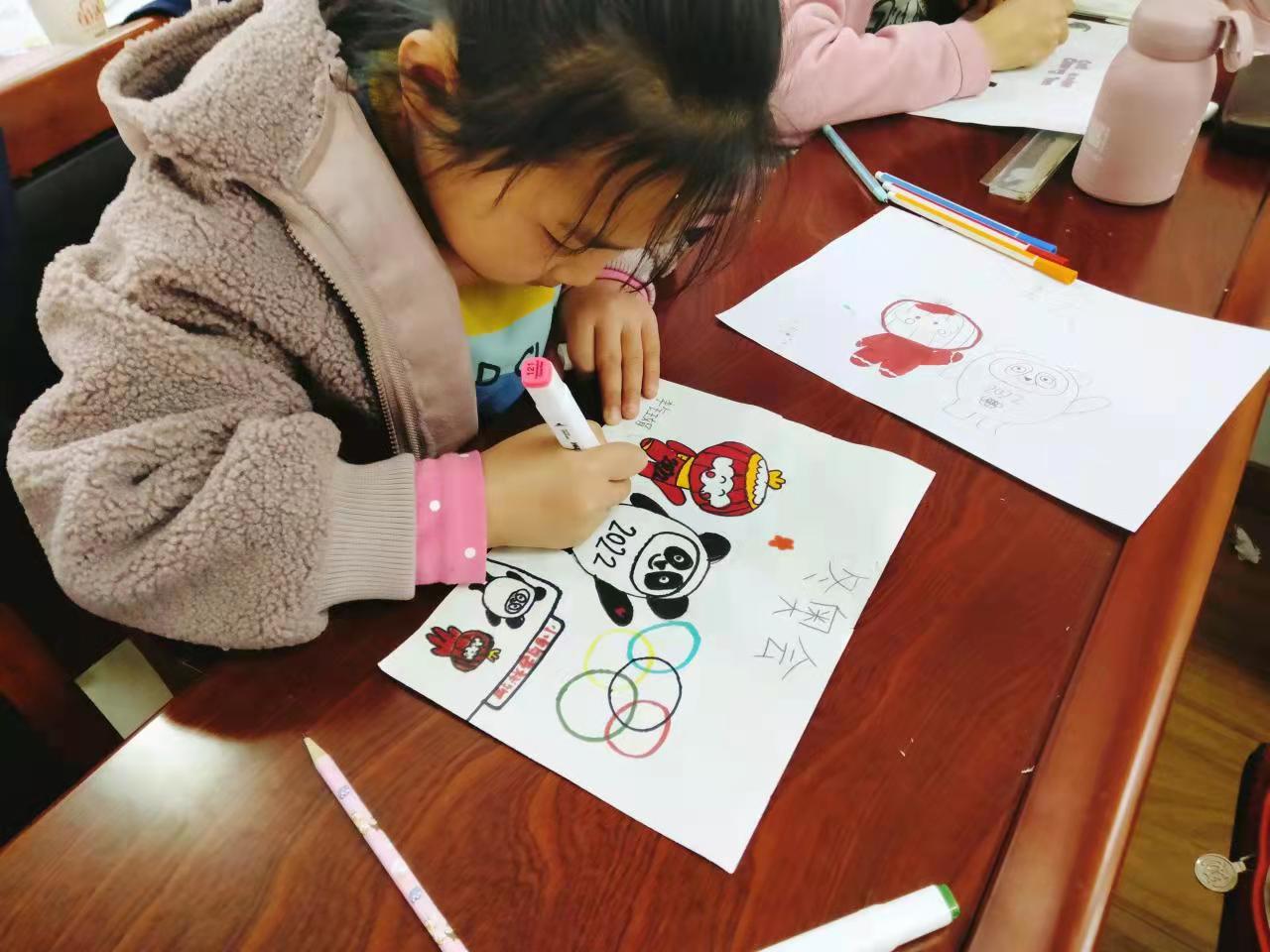 活动伊始,社工引导服务对象上台进行了自我介绍,现场的气氛变得活跃起来。随后,在志愿者的协助和鼓励下,孩子们兴致勃勃地拿起画笔,纷纷发挥天马行空的想象力,在白纸上绘成了各式各样、栩栩如生的图案,现场充满着欢声笑语。不一会儿,单调的白纸奇妙般地变的色彩丰富,里面有服务对象的梦想、冬奥会吉祥物冰墩墩等内容,也有希望家人陪伴、朋辈互助、亲友关心和爱护的愿望,每一幅画都是洋溢着他们的童真、快乐与期盼。此次绘画活动提升了服务对象对美术活动的兴趣和热情,激发了他们感受美、表现美、创造美的情感体验,朋辈相处更为融洽。