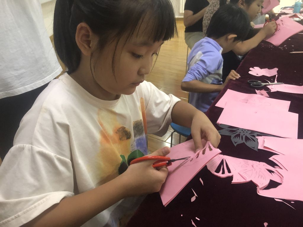本次剪纸课邀请到的是剪纸非遗传承人王涛老师为同学们授课。活动伊始,社工领孩子们学习了剪纸文化的历史渊源,向孩子们介绍剪纸的起源、发展历史,王涛老师还给孩子们展示了美轮美奂的剪纸作品,让他们感受到我国非物质文化遗产的魅力。