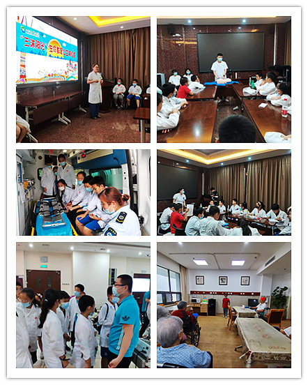 体验营开始后,社工志愿者首先带领营员们开展了“盲人体验”破冰游戏,通过游戏让营员们切身感受残障人士出行的不便,引导营员们今后给予残障人士更多的关爱和帮助。急救知识环节,急诊科护士陈聪聪为营员们讲解了七步洗手法、海姆立克急救法和心肺复苏急救法等知识。参观救护车环节,急救中心工作人员为营员们耐心讲解了救护车内的设施和作用。随后,营员们跟随着康复师参观了康复治疗中心,了解康复患者康复治疗和训练的过程。在医养结合部,营员们为在院医养老人们表演了精心准备的节目,唱歌、舞蹈、京剧、相声,节目精彩纷呈,既给老人们带来了无限欢乐,也让营员们感受到助老敬老的意义。心理健康活动中,精神心理科咨询师王玥为营员们组织了一次曼陀罗绘画活动,在舒缓的音乐中,营员们拿起画笔随心绘画,表达内心感想。最后的社工课堂环节,社工带领营员们开展了“生命进行棋”互动游戏,让营员们在游戏中获得了更多有趣的健康和安全知识。