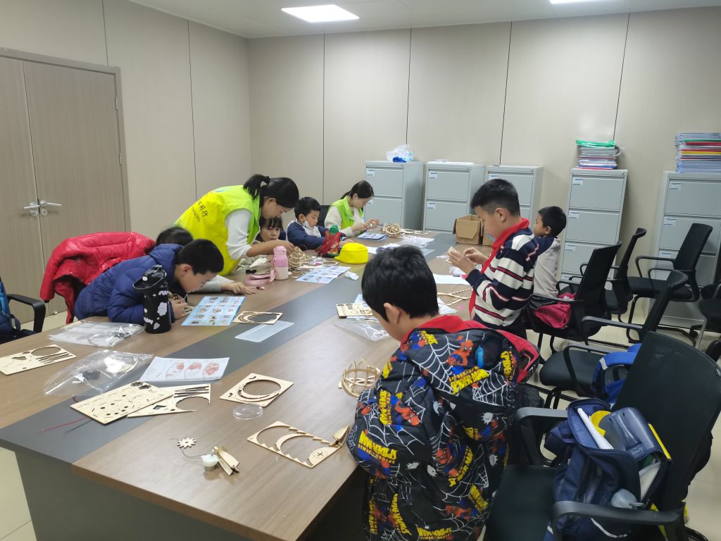 在社工前期调研中发现,辖区儿童对与外界环境有较强的好奇心与探索心。基于此项需求,大桥街道社工站以春晖学堂服务项目为载体开展“指尖星球,触碰世界”儿童手工活动,带领孩子们一起制作木艺地球仪。在制作过程中,社工为孩子们科普地球相关趣味知识,一起探索地球仪表面上各大洋与大洲之间的位置关联,引导孩子们思考人类与地球的关系,鼓励孩子们表达自己对世界的看法,在手工实践中帮助辖区儿童学习如何与世界建立一种更为开阔的关联。