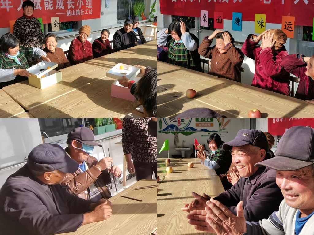 为了丰富五色崖村独居老人的闲暇生活,提升独居老人的自我效能感,获得对老年阶段自我的认同感,特开展老年人赋能成长小组。12月8日上午,苗山镇社工站驻站社工来到了五色崖村幸福院开展“耆欢乐,共成长”老年人赋能成长小组第二节活动,本节活动以“耆欢乐”为出发点,以“成长”为落脚点,以社工专业技能为依托,通过桌面趣味运动会的形式助力独居老人增力赋能。