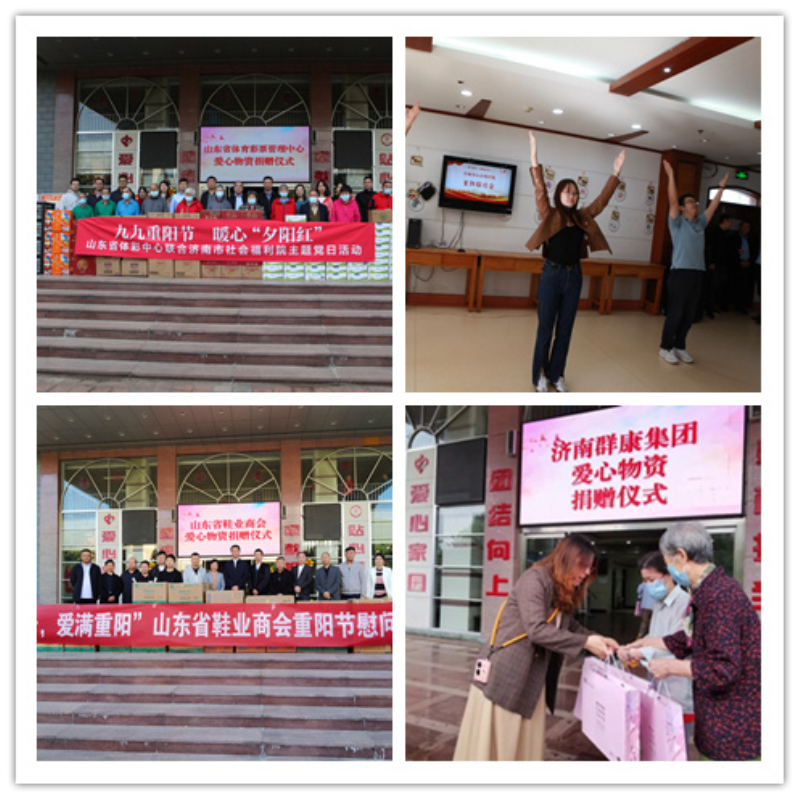 在中秋到重阳双节期间,福利院社工先后接待济南群康食品有限公司、山东省鞋业商会、槐荫区人民医院、济南职业学院、济南福利彩票发行中心、山东省体育彩票管理中心等多个爱心企业和单位的爱心捐赠、志愿服务活动。他们有的给老人们带来月饼、食品、米面等慰问品,让老人们感受到社会的关心和关爱;有的和老人一起放歌新时代,组织开展丰富多彩的文化娱乐活动,让老人们从养老变“享老”;有的给老人进行健康义诊,将健康送到福利院,让老人们安度晚年。