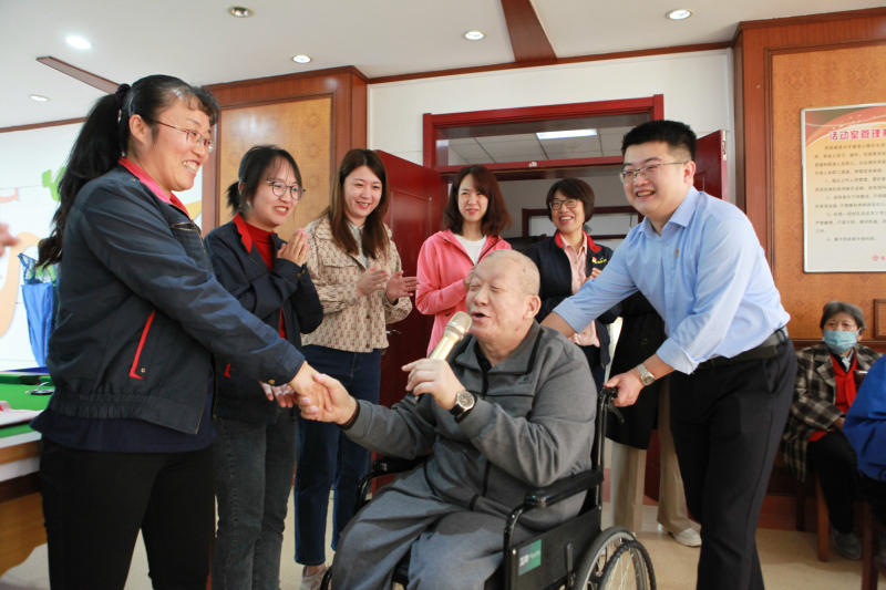 在一楼活动室里,不时传来阵阵歌声,这歌声一会激昂高亢,一会优美舒缓,原来是社工在组织老人们开展欢乐歌舞会活动。张厅长一行来到活动室,向参加活动的老人送去节日祝福,“重阳节到了,我们来看望咱们福利院的老人们,祝大家身体健康、生活幸福!”看到老人身体健康、精神矍铄,活动现场欢声笑语不绝于耳,张厅长非常高兴,向福利院老人们送去慰问金。张厅长指出,传承中华民族孝老爱亲的优秀美德,不要光说在嘴上,写在纸上,而是要记在心上,扛在肩上,落实在行动上。