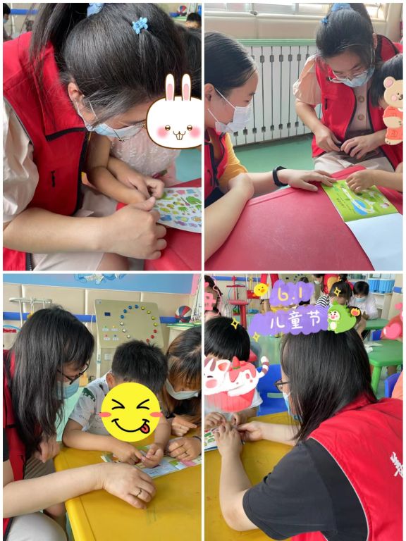 一个多小时的粘贴过程,小朋友们每成功的贴好一个图案都高兴地同身边的人分享。一本画册粘贴完毕,他们就高兴的跑到社工跟前“阿姨,我都贴好了。”社工们也对他们竖起大拇指“宝贝真棒,你好厉害啊!”气氛甚是融洽。
