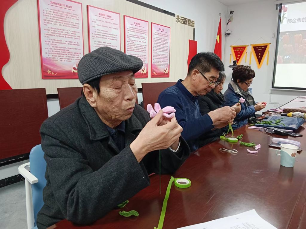 在社工的带领下,党员们共学了习总书记的《论党的自我革命》,他向全党提出“建设学习型的马克思主义执政党”,“将马克思主义基本原理同中华优秀传统文化相结合”。接着,社工引领党员同志齐诵《大学》,体会“大学之道,在明明德,在亲民,在止于至善”与党的根本宗旨“全心全意为人民服务”的异曲同工之妙。活动在党员们动手制作一束献给先烈的鲜花中落下帷幕,鲜花承载着吾辈们对革命年代牺牲先烈的哀思之情,以及对党和国家的感恩之情。