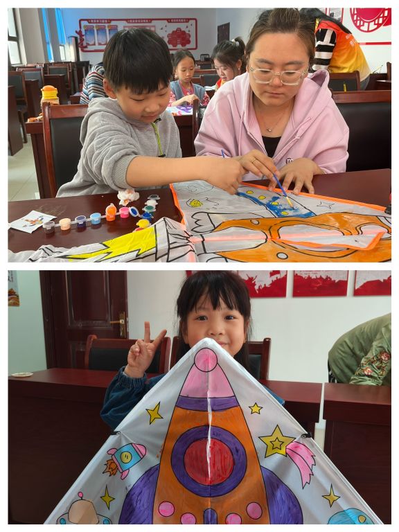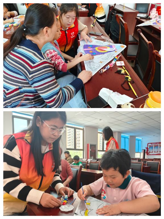 社工开展“春风绘彩鸢,快乐乘风起”DIY手绘风筝亲子活动
