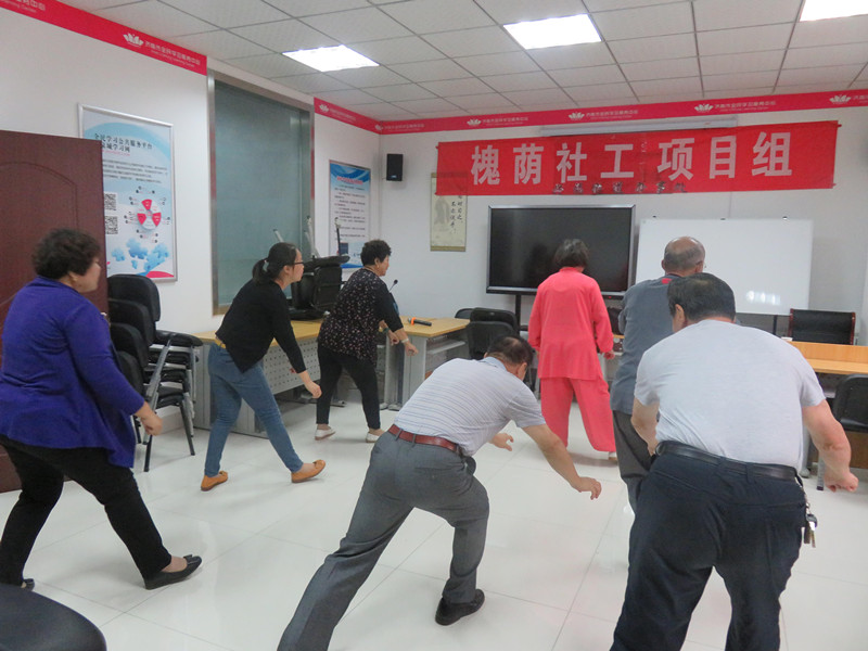 健身气功五禽戏是一种中等强度的有氧运动。通过多种方式控制气息,调畅气机。使形、气、神浑然一体,协调健康发展,对亚健康状态具有明显的调节效果。为丰富社区中老年人业余生活,增强社区居民体质,槐荫社工兴福街道项目组于9月23日上午在街道文化站二楼举办了中老年人健身气功学习小组,此次邀请了气功协会的张景莲老师为居民现场教学。