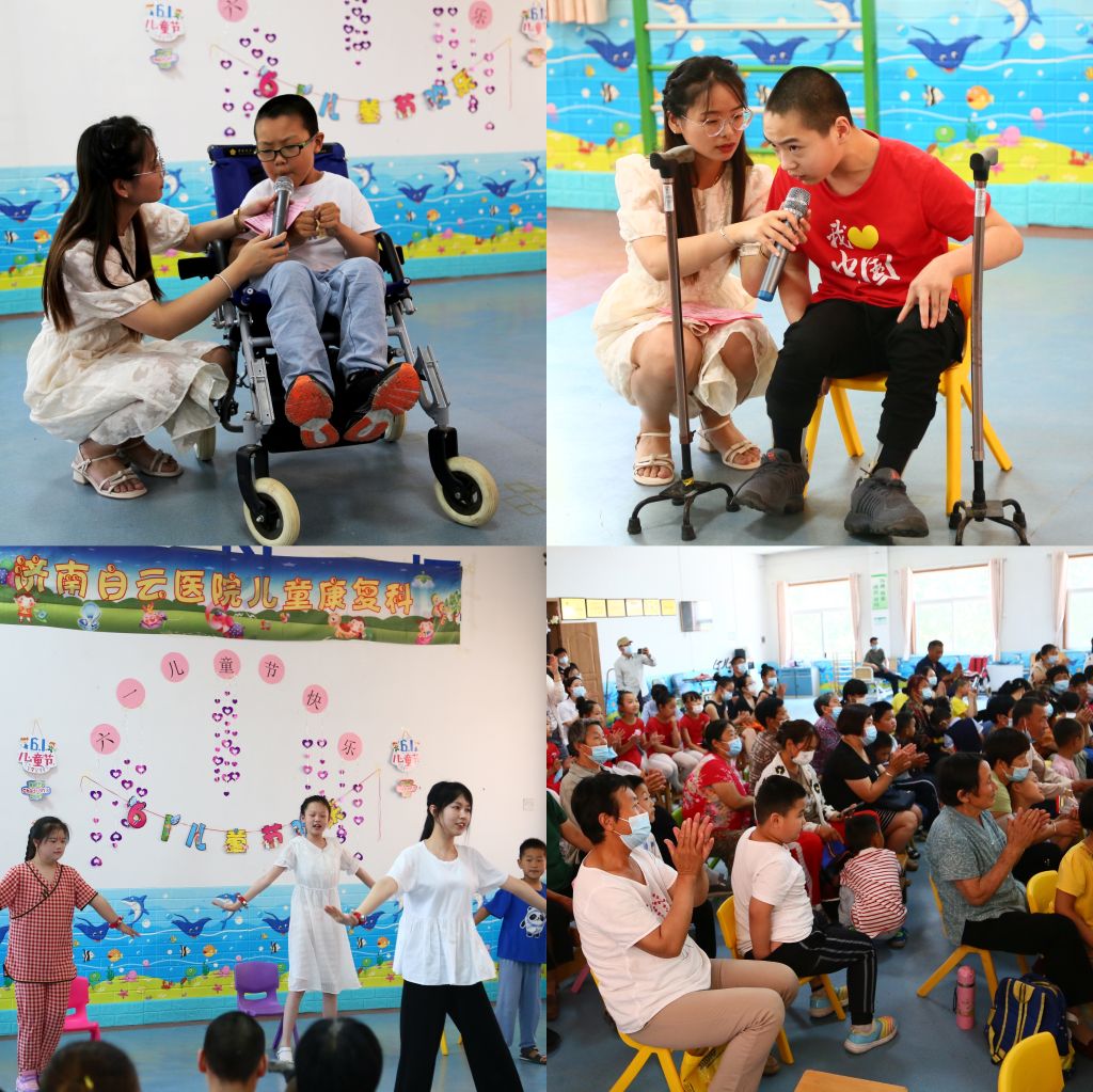 演出结束,街道领导、社工志愿者和医院老师为孩子们发放节日礼物,并与他们互动交流了解他们的日常生活和学习,鼓励他们自强自信,好好学习,大家都很高兴能够陪伴他们度过一个快乐的六一儿童节。