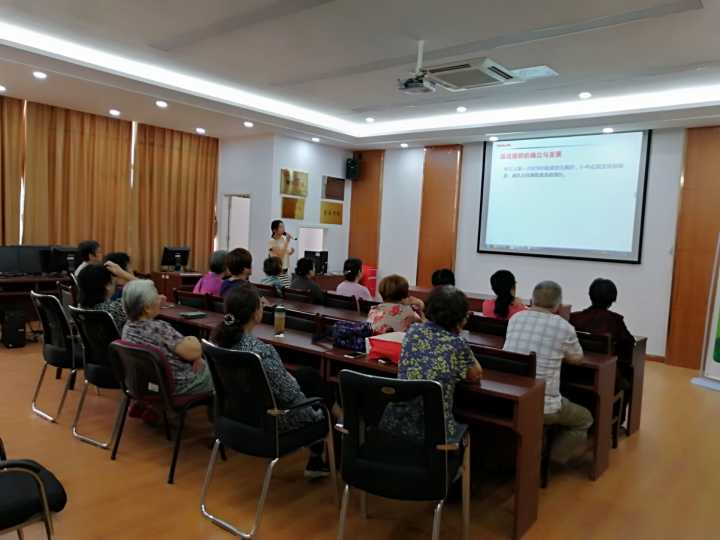 2018年9月11日上午老年大学老师为居民讲解“肠道健康与益生菌”的养生知识,帮助居民认识我们的身体器官“肠道”并教导如何利用益生菌保持肠道健康。