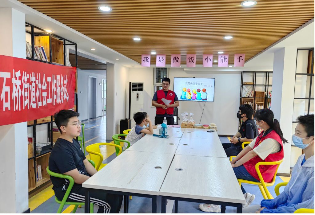 在经过大量前期准备工作后,2022年7月19日上午,杆石桥街道社工站在自由大街社区开展了“青少年成长营丨我是做饭小能手”的小组活动第一节。