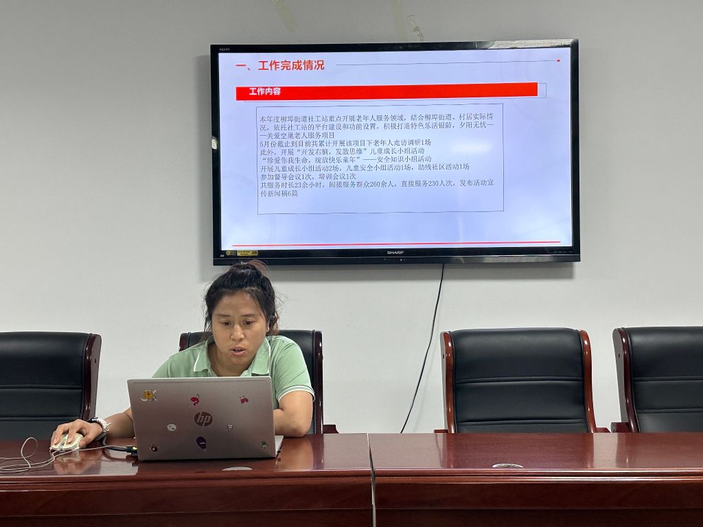 会上,首先由各社工站站长对5月份社工站工作开展情况及下月工作计划做了详细汇报,包括入户探访、开展个案服务、社区活动、资源链接、日常宣传、亮点工作等,接着南山社工总站站长王泽琪带领大家梳理和反思了近期的工作内容,为接下来的重点工作和项目执行提供了思路和方向。
