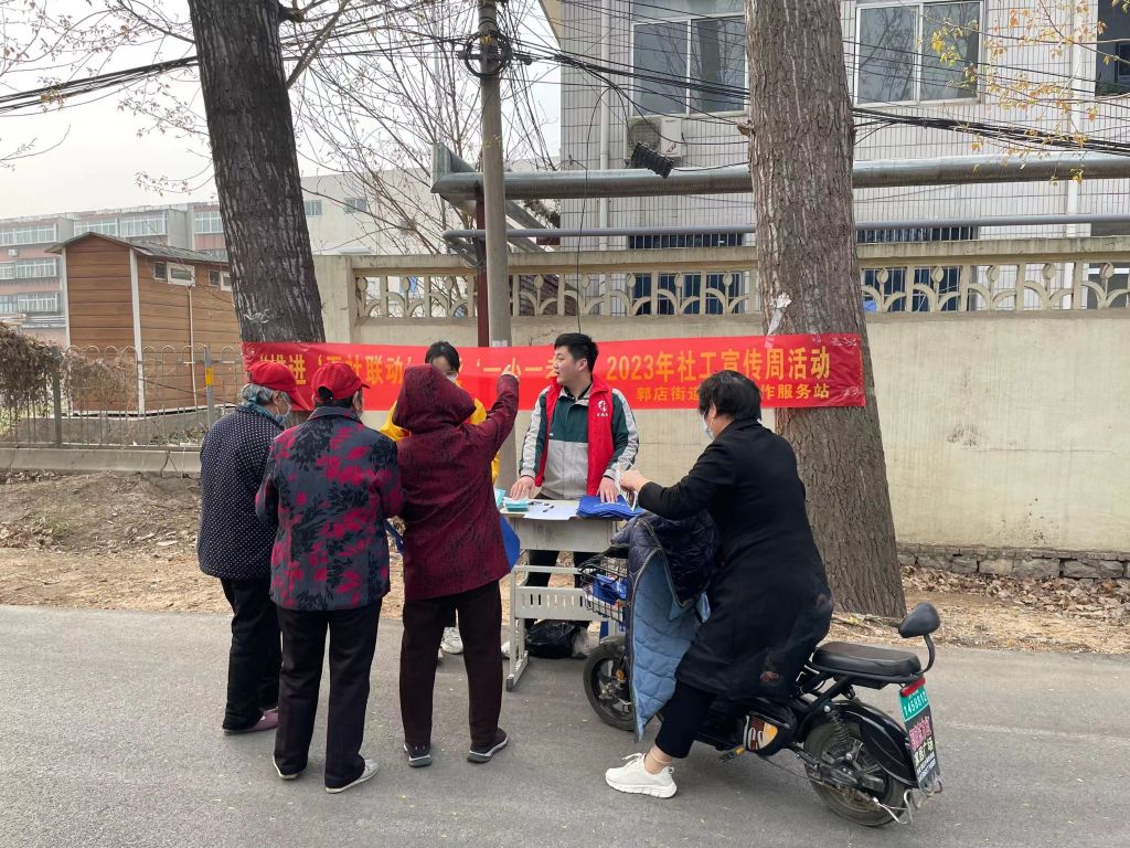 2023年3月21日是第十七个国际社工日,为普及社工知识,提高社工在社区居民间的认知度与认同感,进一步推动社会工作服务的发展,3月22日上午,郭店街道社工站开展“推进‘五社联动’关爱‘一小一老’”社工周外展宣传活动。