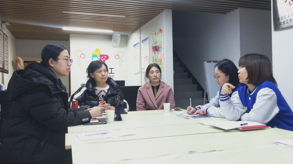社会工作督导是一个提升社会工作效能的过程,协助投身社会服务的社会工作者开阔视野、提高工作士气和满足感,更好地完成专业使命,并使服务对象获益的过程。为加强新一年济南市槐荫区吴家堡街道社会工作服务站(以下简称:吴家堡街道社工站)运营建设,推进社工站服务可行、应需、创新,吴家堡街道办事处社会事务办公室负责人陈莉莉,济南大学副教授、积成社副理事长、吴家堡街道社工站督导任晓敏,济南槐荫积成社区社会服务中心总干事杨阳应邀来到吴家堡街道社工站进行会谈,协助社工梳理服务思路,并就下一步社工站工作开展方向进行指导。