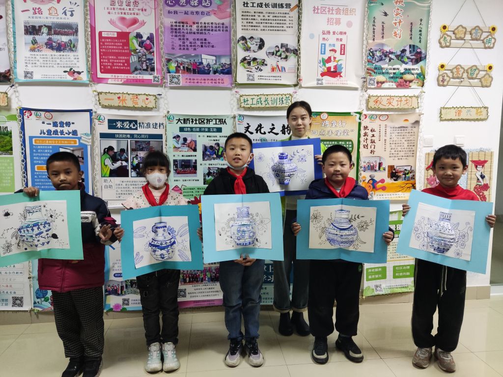 笔绘青花,瓷韵流芳——大桥街道社工站带领儿童开启立体纸艺与青花瓷的非凡融合之旅