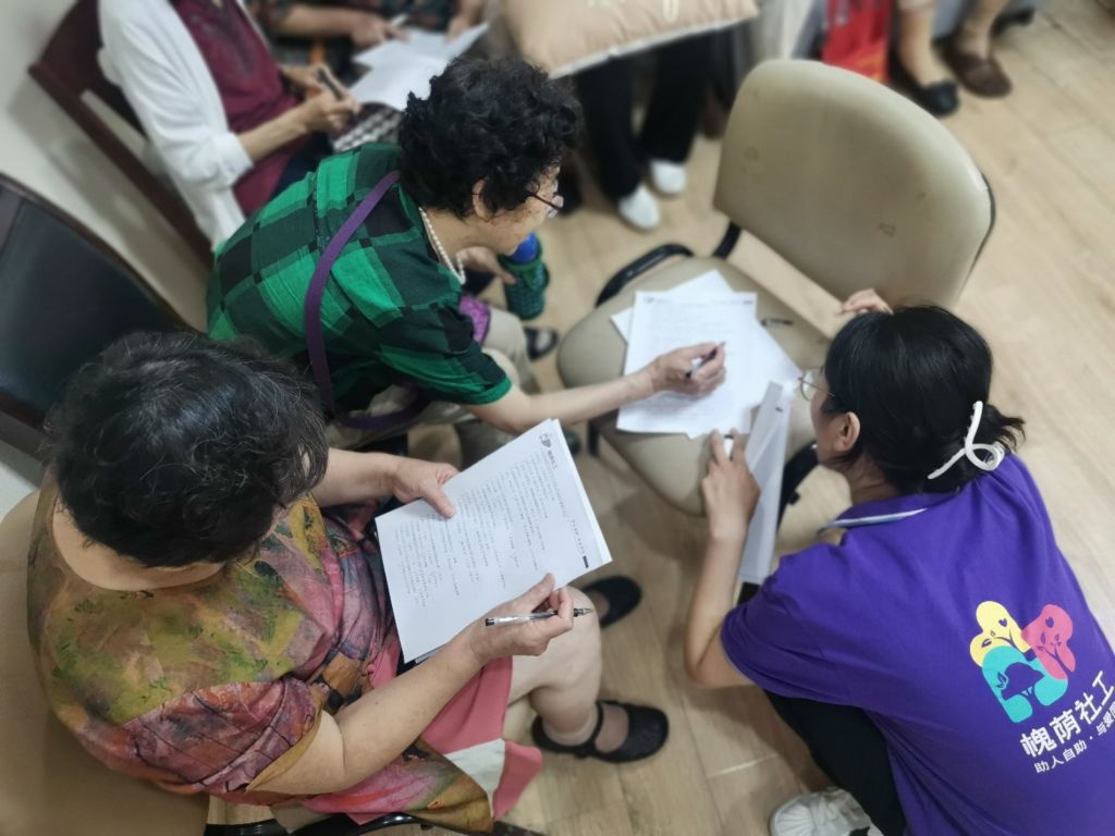 经过为期一年的社工站服务,社区志愿服务平台已初步“落地”,社区志愿者可通过该平台进行社区志愿服务的报名并为辖区开展如助老助残、文艺演出等社区志愿服务活动,社区志愿者在志愿服务意识、参与等方面发生了正向改变,但在社区志愿服务组织化、制度化、规范化和常态化上还存在着短板。本次动员会,社工站社工主要就第二年志愿服务发展方向与内容与社区志愿者进行商议,并通过问卷和访谈相结合的形式继续收集社区志愿者的相关需求。会议期间,社工就如何推动社区志愿队伍架构化、社区志愿者赋能的“能”需要在哪些方面进行、社区志愿服务激励机制如何推动等方面,鼓励社区志愿者们进行头脑风暴、群策群力,为第二年更好地推动社区志愿服务的“生根”与“发芽”助力。动员会后,社工站已初步形成了现阶段社区志愿服务队伍人员架构及分工、社区志愿者准入及退出机制、社区志愿服务制度等,并对社区志愿赋能制定了计划,为之后具体实施奠定了基础。