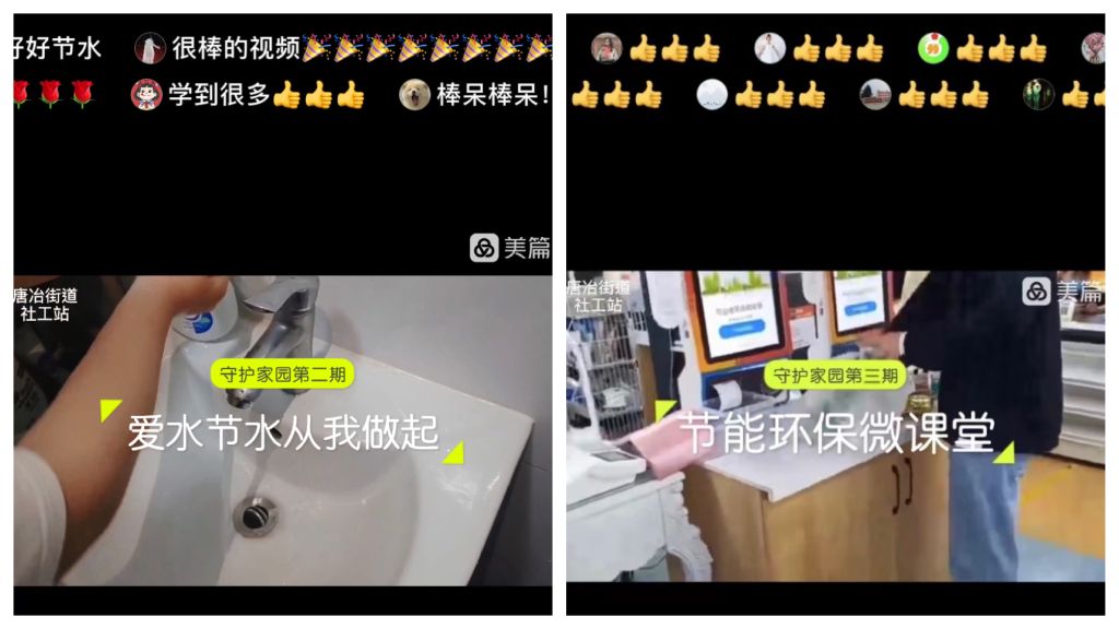 社工通过垃圾分类、节水爱水、节能环保、爱护花草四期向居民们详细介绍绿色生活的概念、呼吁其从身边小事做起,践行低碳环保生活,本系列视频的科普性、趣味性获得居民的一致好评,视频播放量也累计达到8000余次观看。在视频素材采集、拍摄以及剪辑制作过程,大学生志愿者们身体力行,积极展现其敢于创新、勇于实践的良好精神风貌。