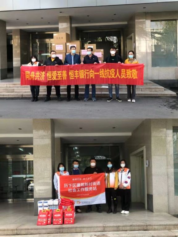 “守望相助抗疫情,心手相牵共前进”。疫情牵动着每一个人的心,大家也想在抗疫战中献出自己的一份力,在疫情严峻时刻,建新街道社工站接收到来自山东省扶贫开发基金会“恒丰银行恒爱至善基金”、科恩口腔千佛山分院的抗疫物资捐赠,大量的口罩、消毒酒精、饮用水等为此次抗疫提供了一定的物资支持。