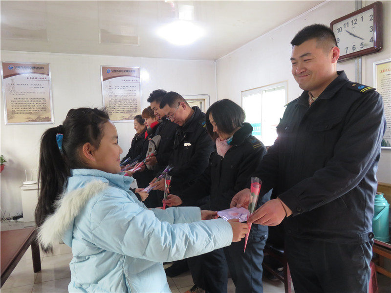 在社工的带领下,青少年们来到了济南市公交总公司第五汽车公司一队,第一次见到在场站中安静停放的公交车,大家感到熟悉又陌生。随后,在五公司一队“一日导游”尹书记的带领下,青少年们游览起了公交场站,并于公交车上聆听司机叔叔讲述的乘车安全常识,在“一日导游”的风趣解说下,车厢里传出阵阵笑声,青少年们在欢笑中习得了安全常识。游览结束后,青少年将“新春的一封信”交给了在场站中休息的公交司机,并送上了自己的节日祝福,活动在温暖的氛围中落下帷幕。