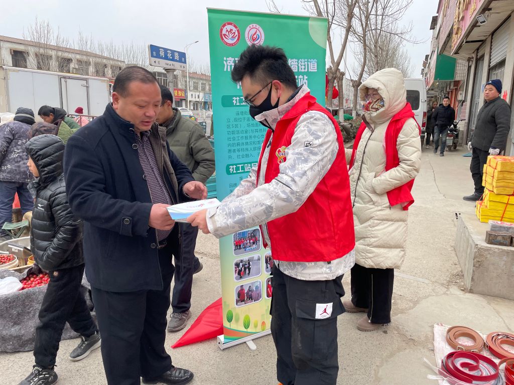 活动中,遥墙街道社工站利用大集的机会,通过宣传单页、条幅、展架等多种形式向前来赶集的群众宣传移风易俗新规定和社工站相关活动,加强群众对婚事新办、厚养薄葬、勤俭节约、文明祭扫新理念的正面引导,让移风易俗理念在潜移默化中深入人心。