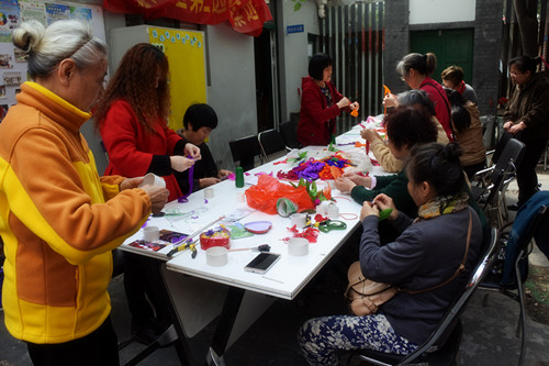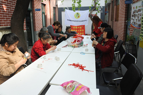 为使社区居民的空闲生活更加丰富多彩,提高社区居民的动手能力和创新能力。济南槐荫积成社区社会服务中心于2017年5月4日在在前卫街合和小院开展第四次“丝网花兴趣小组”活动。