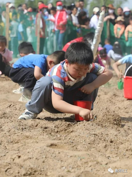 游龙般地队伍在社工的带领下有条不紊地走向沙区,在进入沙区场地前,社工为小朋友们解说了沙区规则,随着一声:“挖宝游戏开始啦!”孩子们蹦蹦跳跳的进入了沙区,“我找到啦”“我也找到啦”一阵阵喜悦的欢呼声随着岸边的春风吹进游客的耳中,驻足望去,不大的场地被游客围的里三层、外三层,挤进人群才发现,这里原来是“儿童乐园”。本次活动——沙土寻宝,一个个宝藏密码被顽童从沙土里“探寻”出来,属实一片欢乐景象。有的小朋友把手中的“珍宝”交给亲爱的爸爸妈妈,有的交给可爱的社工姐姐。“社工姐姐,这个送给你们,你们辛苦了。”其中一个小朋友真诚的举着手中的人“珍宝”说。