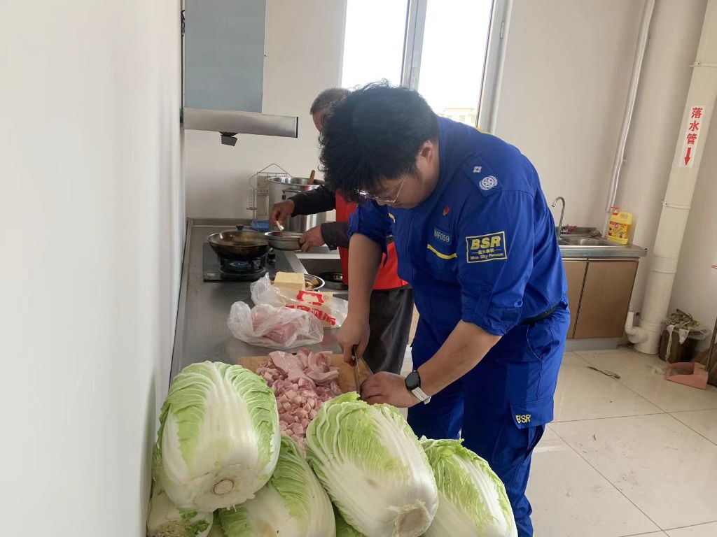 为做好此次服务,埠村街道社工以及埠村街道民政所、义工协会、章丘区蓝天救援公益服务中心早早来到了现场将物资运输到长青社区,其中包括蔬菜,豆制品,肉类等,将物资分发后我们积极投入到本次的做饭过程中去,按时为老人孩童们做一顿热乎乎的中饭。在本次服务过程中我们联合长青社区人员分工协作,有人切菜切肉,有人进行清洗,有人进行烹炸调制,各司其职,积极配合