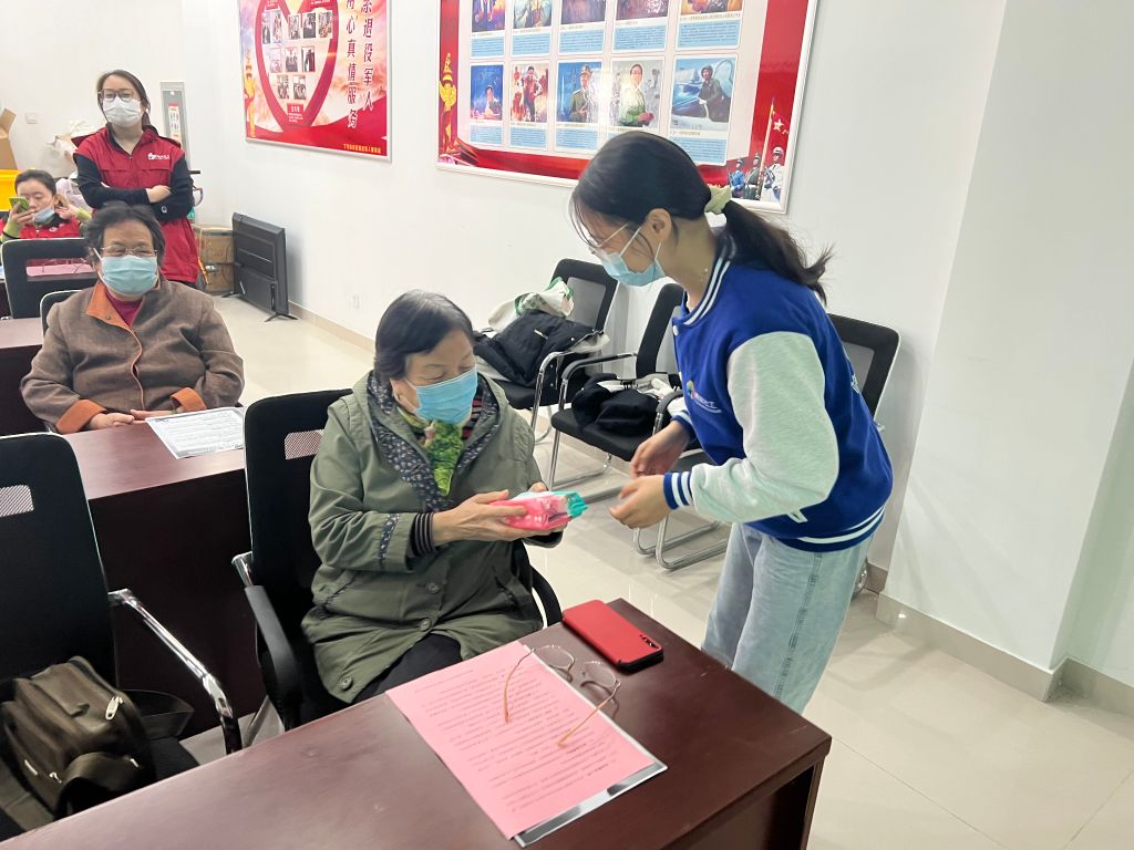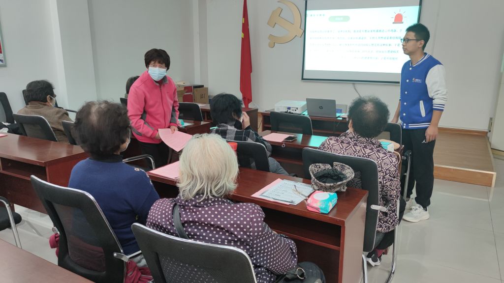 为回答正确问题的老人送上奖品