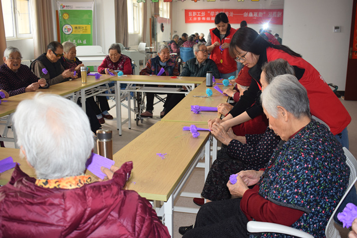 阳光明媚,春暖花开。3月5日上午,众诚悦银龄养老社工项目组在福利中心三楼老年大学开展“手巧心灵——康乃馨”手工活动小组。