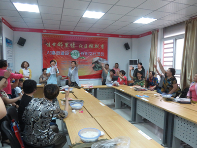 6月7日下午两点半,槐荫社工兴福项目组联合兴福街道办事处、银河伟业物业管理公司在街道文化站二楼开展了以“佳节邻里情 社区粽飘香”为主题的端午节活动。农历五月初五是我国延续了两千多年的传统节日——端午节,转眼间,今年的端午节也即将在缕缕粽叶清香中到来。项目组与8个村及社区的共26位居民一起来比赛包粽子,提前感受这浓厚的节日气氛。