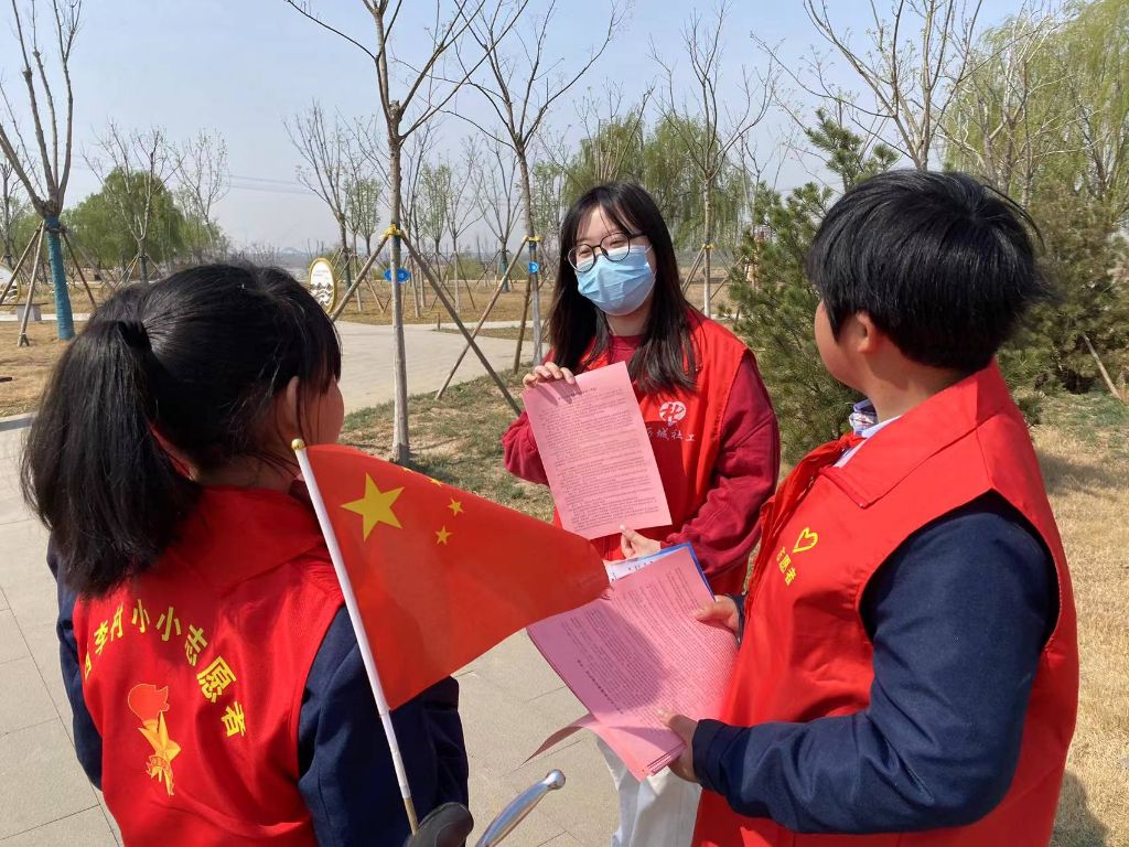 现场,党员志愿者通过摆放节水知识宣传展板、播放水法宣传视频等形式向小志愿者们宣传水法和节约用水知识。