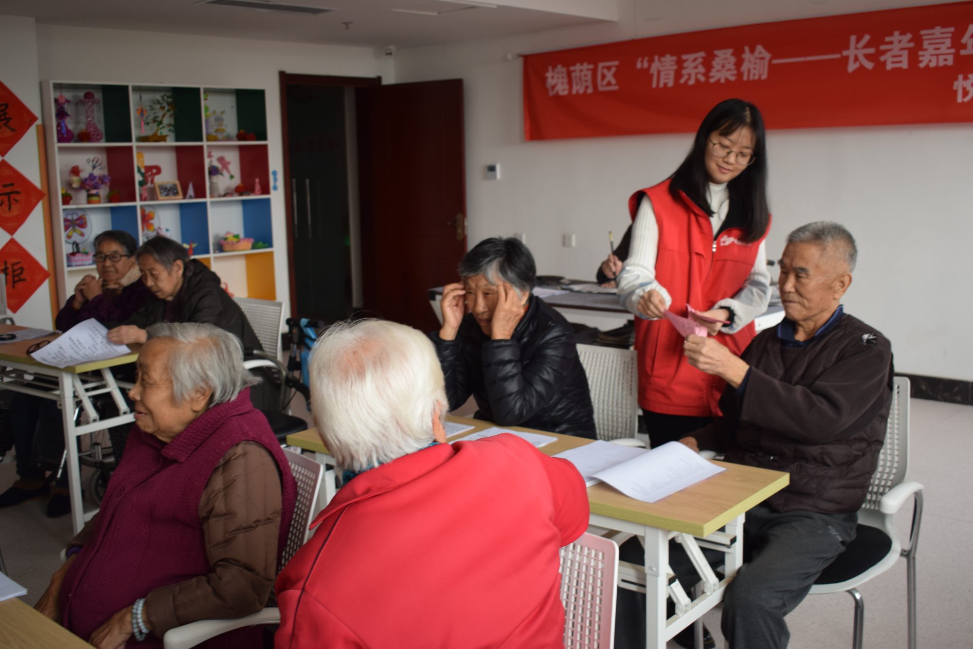 诗歌文化是我国历史文化长河中最璀璨的一颗明珠,在开展了几个月的诗歌小组之后,为了激发服务对象的学习热情,检验服务对象的学习效果,评估小组成效,社工组织了本次诗词大赛活动,同时也是“风雅颂”诗歌小组结课的契机。经过一个月的前期准备工作,11月15日悦银龄养老社工项目组策划的“风雅颂”诗词大赛活动在福利中心三楼老年大学开展。