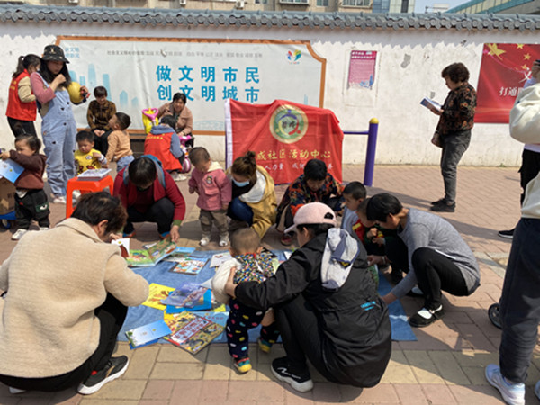 一本好书,就是一辈子的良师益友,为了鼓励辖区居民及孩子们多读书、读好书,从小培养阅读的好习惯。济南槐荫积成社区社会服务中心新市民城市融入支持服务项目几年来一直在开展流动图书角活动,为新市民家庭提供优质的阅读资源和更为丰富的阅读机会,致力于提升新市民家庭的阅读意识。近期还有许多青年志愿者也加入了我们的活动中来。4月7日上午10:30,济南槐荫积成社区社会服务中心新市民城市融入支持服务项目社工带领着济南大学的志愿者们在西河小广场开展流动图书角活动。在这里,辖区的孩子们可以免费借阅各种儿童读物,尽情感受阅读的乐趣。