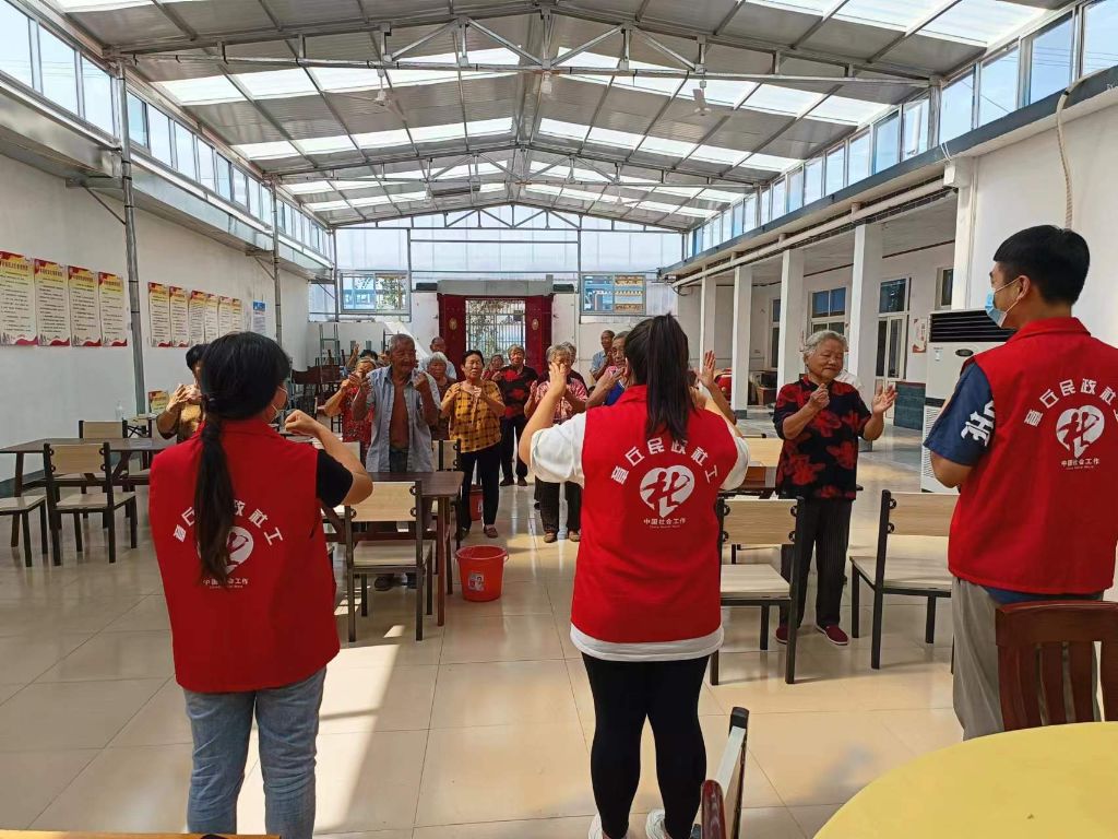 开餐前,带领老年人做起了手指操,在社工的口令下老人们积极参与,此次活动不仅帮助老人锻炼手指机能、提高肢体协调能力,而且让老年人增加了参与感,活动过程中老人们的脸上都挂满了笑。