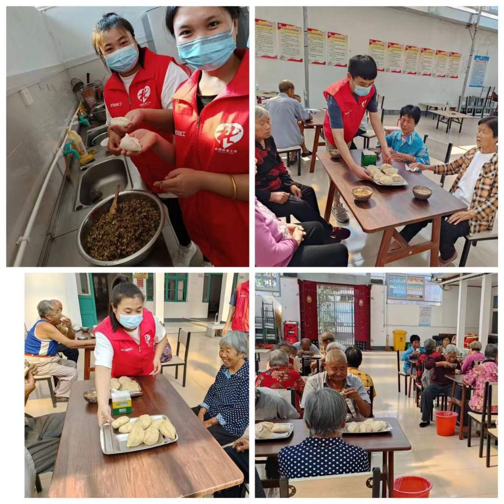 9月28日,社工们早早来到西埠村幸福院,与志愿者们相聚在幸福院厨房,大家一起为幸福院的40多名老人准备午餐。和面、调馅、擀皮、包包子,大家相互学习,配合默契,现场有说有笑,其乐融融。一个个“白胖胖”的大包子将“生活蒸蒸日上,幸福圆圆满满”美好寓意包进馅里,不一会便摆满了整个盖帘。