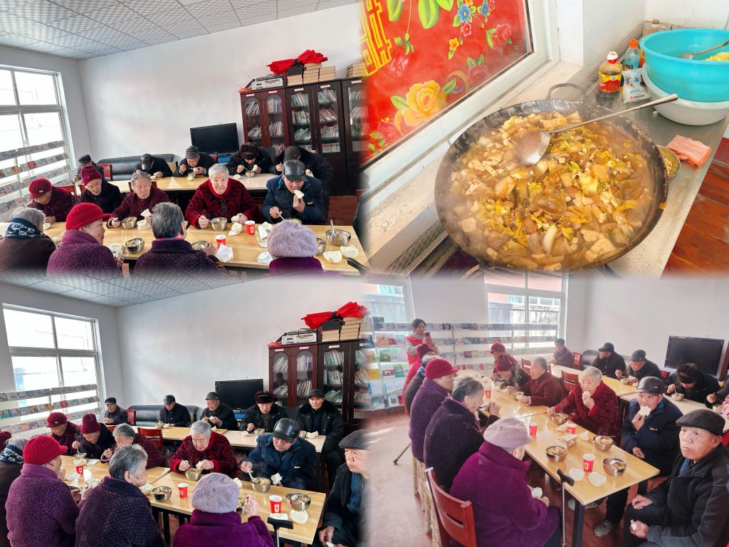 一大早,志愿者们带着猪肉、豆腐、白菜、粉皮等新鲜等食材来到宋上村农村幸福院。在村干部的号召和全力支持下,村民都主动赶过来帮忙。宋大爷带来盆和刀,李阿姨带来了毛巾,刘大爷带来了大锅……幸福院很快就被温暖的烟火气包围,逐渐热闹起来。