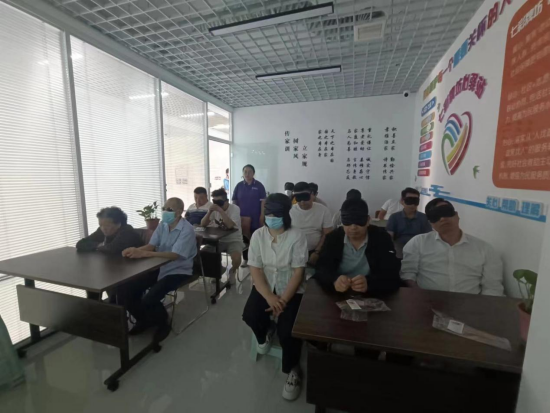 无障碍电影就是在不破坏电影原貌的基础上,在电影画面的空白的地方,用比较准确、恰当、精炼的文字、语言把画面解说清楚,让视力障碍的残疾人通过讲解来理解影片所要表达的内容。除了视力障碍的社区居民,此次无障碍电影服务活动还邀请了健全的社区居民戴上眼罩共同体验无障碍电影,让体验塑造共情的价值,以共情价值推动残健融合。