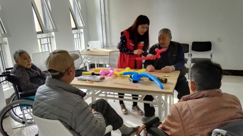 在社工动员下,福利中心老人积极参加,活动现场其乐融融。社工为成员讲解了气球的打气方法及制作技巧并亲身示范,手把手教大家制作过程,折叠出形状各异的气球。两个小时的时间,大家学习了小狗、小熊、花朵等造型。千变万化的造型让众人赏心悦目,大家忙得不亦乐乎。