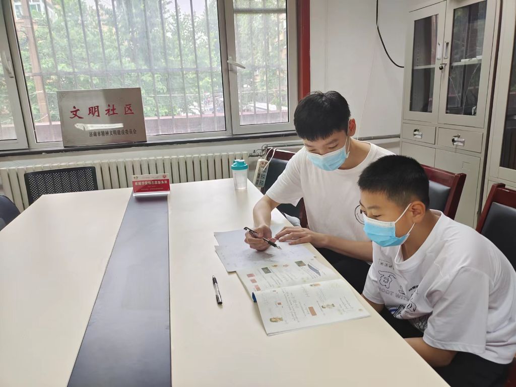 为满足辖区困境儿童教育辅导需求,舜玉路社工站通过在《中国志愿服务网》发布“关爱困境儿童学业帮扶”项目,成功链接到辖区一名志愿者大学生。在社工、社区大学生志愿者、社区儿童主任和服务对象的共同协商下,制定了服务计划,志愿者利用暑假期间,在每周二、四在舜玉社区图书阅览室,开展每次2小时的六年级数学课业预习,为服务对象接下来的学习奠定基础。在语文学科预习方面,社工为服务对象链接到寒假期间给孩子提供过课业辅导的志愿者,进行每周一次的线上一对一教育辅导。