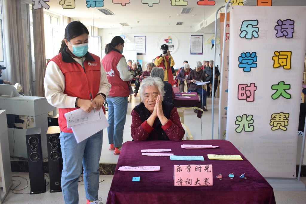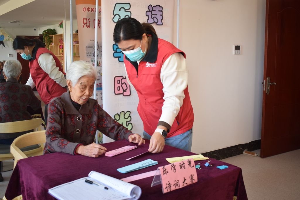“乐学时光”诗词小组共计开展了20节课,每节课都保持着较高的人气,住养老人们从不迟到早退。为了检验住养老人本年度的学习成果,社工以诗词大赛的形式作为结课仪式,为“乐学时光”诗词小组活动画上圆满的句号。
