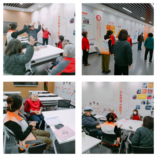 交流碰撞出想法。本次辅导以有参与想法的社区中老年志愿者为主,张阿姨带领团队成员积极参与并且向大家引见团队名人曾叔叔。为了让成员更好的融入本次培训,激发成员积极性,站长李舒首先以询问日常娱乐活动以及擅长领域为切入点,缓解气氛,激发参会热情。随后向成员介绍了创享计划以及积分制度,点明此项活动可以推动他们在项目实践中实现组织化发展,可以在更大层面的舞台去展示自己。为了使叔叔阿姨更加详细的了解社区社会组织与社工站的关系,站长李舒从社区社会组织的含义、意义以及资源链接为切入点进行解答。为了确定申报项目,张阿姨带领团队成员积极发言、提供想法,曾叔叔还带领大家现场进行老年健身操展示,在轻松愉悦的气氛中大家共同确立了申报的项目主题“哑铃微光助老服务”。