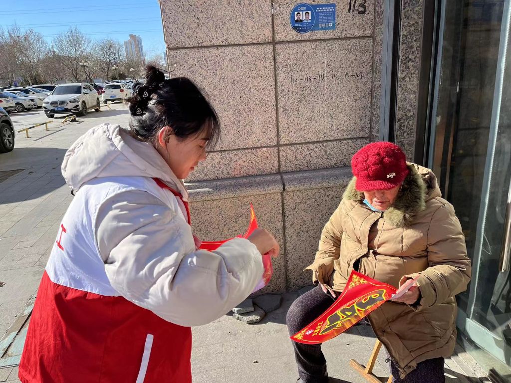 社工行走在社区公园、广场、便民超市,用社区漫步的形式向居民介绍中国春节的传统习俗和文化内涵,将红红火火的福字送到居民手中,希望通过这种方式传递祝福和快乐,同时,社工还向居民介绍社工站过往开展的社区活动,增加居民对社工的熟悉度,鼓励居民积极参与社区活动,促进社区融入。