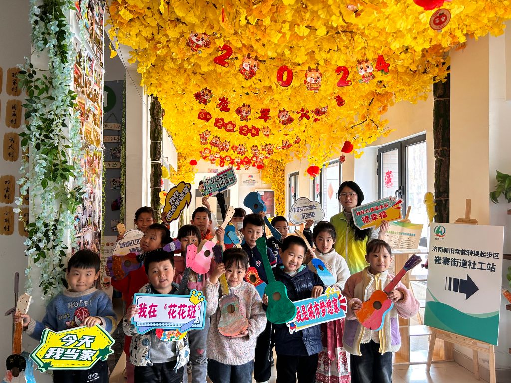济南新旧动能转换起步区崔寨街道社工站开展“创意‘尤’你,谱绘童年”尤克里里DIY活动