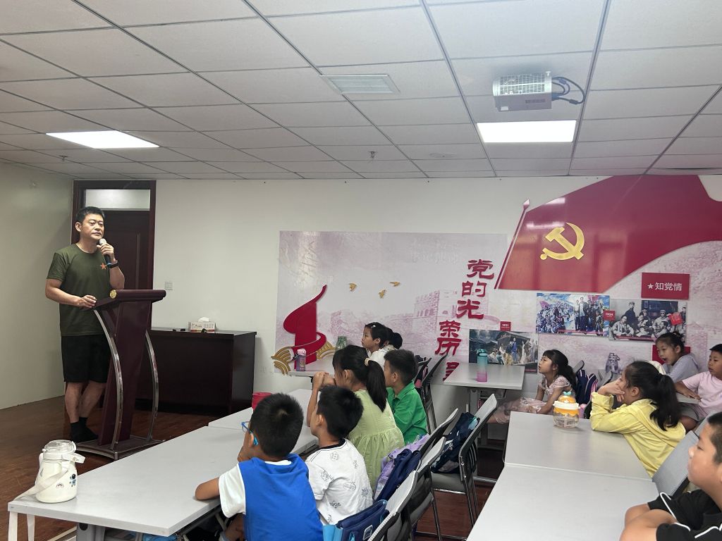 活动伊始,裕园社区刘书记向广大退役军人致以节日的祝福,接着,“成长加油站”的小小青年们,一起为各位退伍军人献上了自己编织的丝网花,并以稚嫩的童音,演唱出铿锵有力的《红星闪闪》,让众位老兵在熟悉的旋律中热泪盈眶。接下来,退伍老兵们向青少年们讲述了曾经的军旅生涯,以及退伍后积极参与社区治理的故事。张老讲述道,退役后他虽然脱下了军装,但心中永远擎着一面烈烈招展的旗帜,催着他们继续为社区做出更多。退役军人们用件件真实事例,在青少年心中播下了蕴含无尽生机的种子,慢慢催生出爱党、爱国、爱人民的大树。
