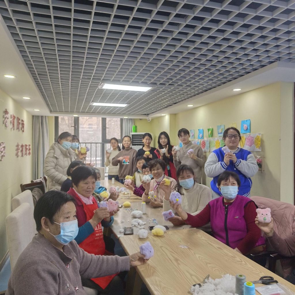 指尖绽放,重回芳华。社工与山东管理学院社会工作专业的学生们进行教学,共同制作毛绒玩偶,本次制作的毛绒玩偶将由社工在后续的入户中赠给困境儿童。在制作过程中,小组成员的凝聚力逐渐增强,小组成员的自我认同感与获得感越来越高,社会功能也不断得到增强。通过本次活动,不仅仅促进了小组成员内部沟通与动手能力,也促进了社区老年志愿者和大学生志愿者的交流与融合,让学生们与小组成员之间相互学习、交流,推动社区志愿服务与社会工作专业实务的融合与交流。