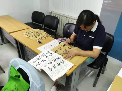 活动伊始,社工将准备好的笔墨纸毡一一分发,组员们挑选自己喜欢的笔纸,静气凝神顷刻间,或苍劲有力、或温文尔雅、或笔走龙蛇,带有各自风格的作品跃然于纸上,完成个人作品的组员互相欣赏相互分享个人的经验和心得,分享个人喜欢的字体和字形。其后书法“新手”们来到各自结对子的组员身边,跟着“老师”的指点耐心的练习起来,时间在字里行间中偷偷溜走。