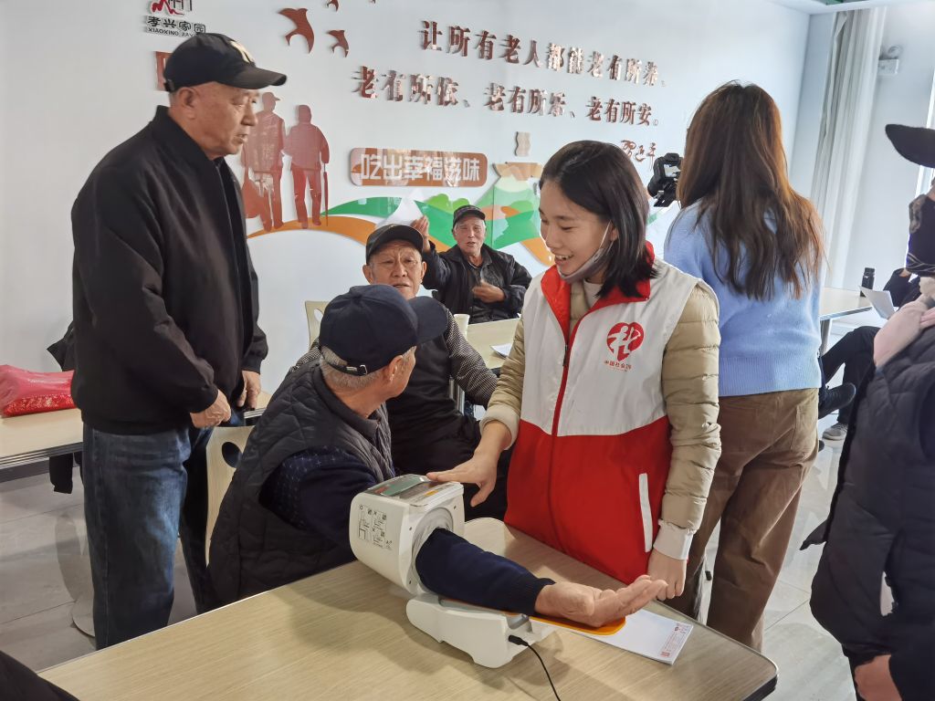 社工早早的便把购买好的新鲜食材带到党群服务中心活动室,和志愿者、老人们围坐在一起开始擀皮、配馅、包饺子....大家互相协作,不一会,一盘盘个大馅足的饺子便呈现在桌面上,一盘盘水饺表达着爱意在这寒冬里飘香,温暖困难老人的心。随后,社工为老人量血压并叮嘱老人注意进行血压自我检测,按时服用降压药,孝文化艺术团的志愿者还为为老人演唱了戏曲经典片段。