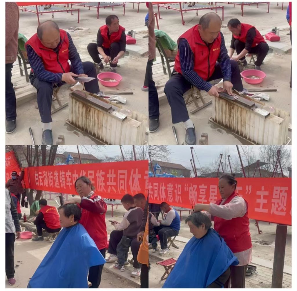 活动现场气氛热烈,吸引了众多村民的参与。免费理发区域,专业的理发师们热情地为村民们提供了精心的发型设计,让大家焕然一新。另一边,磨刀师傅们熟练地磨刀,让村民们的刀具重新变得锋利,受到了村民们的一致好评。