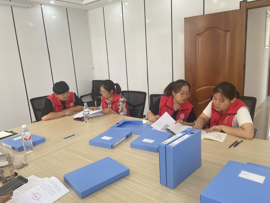 评估现场,评估老师通过审阅现有档案资料、现场询问等方式进行综合考核评估,并根据专业支持、资源链接、社会影响、档案管理、服务执行等评估板块对社工站项目进行全面审查和提问。