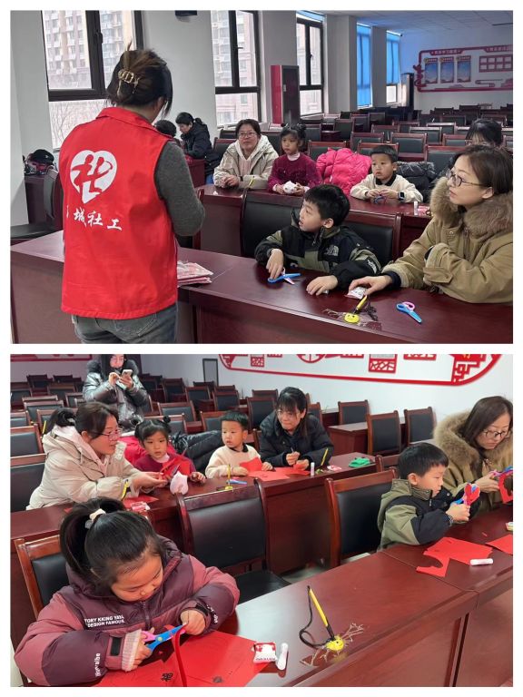 春节的脚步越来越近,为丰富辖区孩子们的假期生活,让他们感受新春传统节日氛围。1月30日下午,鲍山街道社工站联合梁二村举办“拓福剪纸迎新春 龙的传人过龙年”庆新春剪纸活动,吸引辖区20名儿童及家长参与,活动旨在通过新春剪纸表达对新年的美好祝愿和对传统文化的热爱。