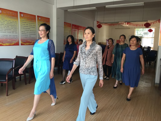 “抬头、挺胸、收腹、立腰、提臀……”9月13日下午,盛福花园居委会活动室里,十几位阿姨正伴随着舒缓的音乐,款款走着“猫步”,他们平均年龄在60岁左右,但她们个个不服老,模特学习使她们显得活力四射。